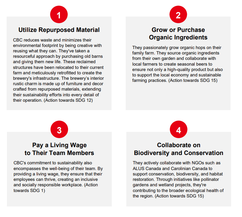 From the interviews conducted, it appears that the breweries of Ontario’s Southwest truly grasp the significance of collaboration and engagement with a diverse spectrum of stakeholders. All three breweries actively involve local communities, non-governmental organizations (NGOs), and suppliers in their sustainability journey. For instance, CBC collaborates with local farmers to source organic ingredients, fostering a strong supplier relationship and contributing to the growth of local agriculture.