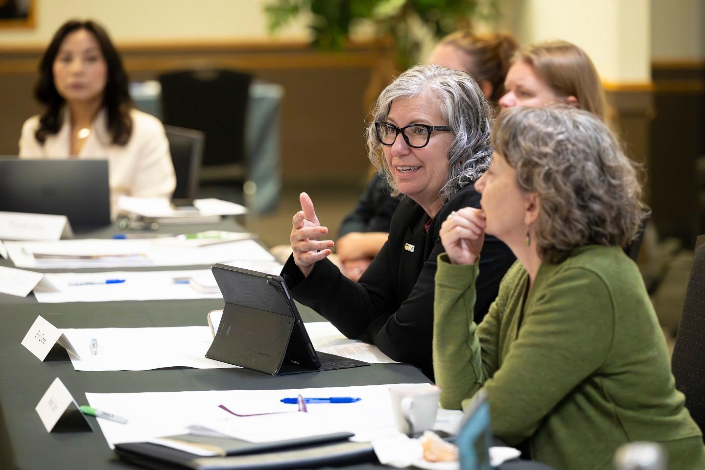 Erin Crane, CEO of Tourism Lethbridge, speaks during a corridor workshop in Pincher Creek, Alberta.